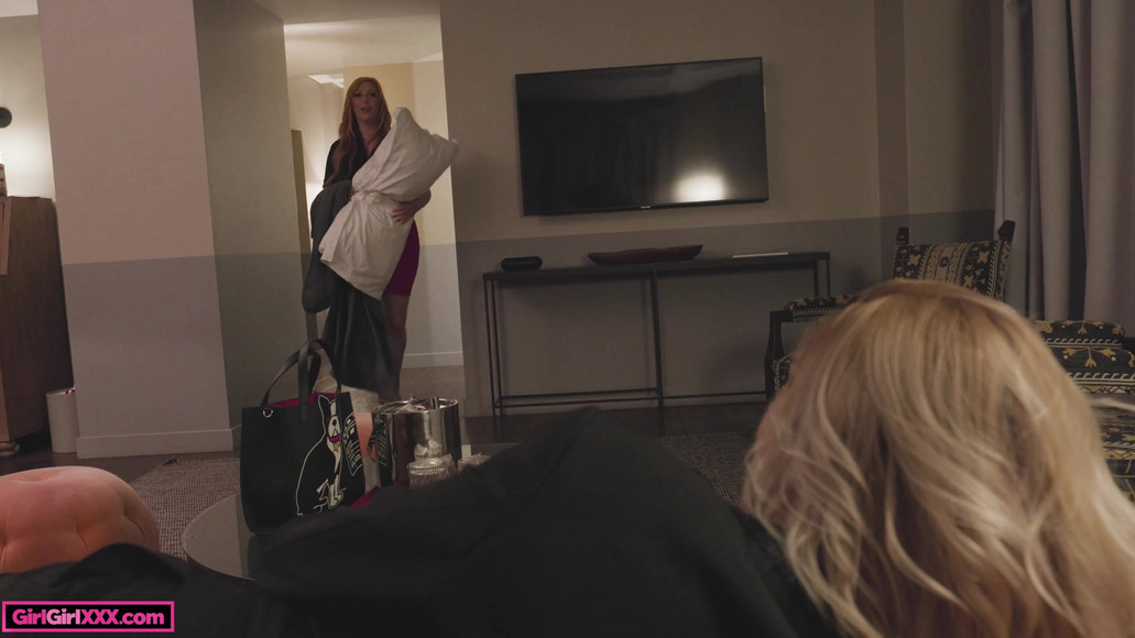 Stunning milf executives Cherry Kiss and curvy redhead Lauren Phillips are exhausted from the long day and are ready for a good nights rest, but unfortunately their hotel suite only has one bed. Not wanting to waste time with calls to correct the mistake, Cherry insists she will just on the couch and Lauren reluctantly goes to bed. With some tossing and turning Lauren comes out to convince Cherry to join her and a second burst of energy ignites between them once in the bed together as Cherry begins to kiss Lauren and quickly burying her face and fingers inside Laurens hot furry pussy for a few orgasms and a great night of relaxation! - INTERACTIVE TOY READY!